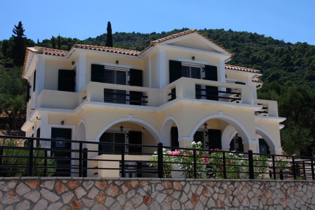 Het is gebouwd in 2004 en is gebouwd volgens de laatste normen op het gebied van aardbevingsbestendigheid en ligt aan een doodlopende weg in de landelijke omgeving van de landtong Marathia temidden van olijfboomgaarden en pijnboombossen. Achter het huis is een olijfboomgaard met traditionele stapelmuren.